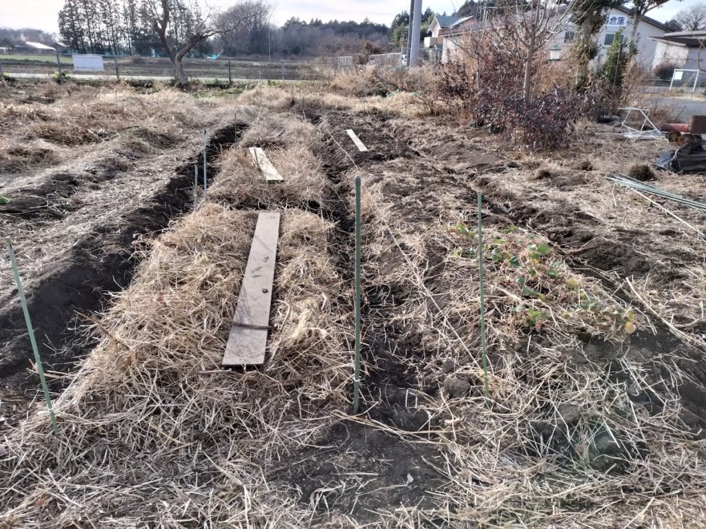 ということで、不耕起で、元肥なしで、草堆肥なんかを生かした自然栽培のようなものでどうでしょうか?畝もそんな高い畝でなくていいし、収量を目指さなくても、無農薬で自分が食べれればいい。