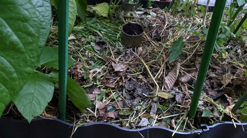 レイズドベッドの栽培を急いでいたので、下に枯れ木を敷き込んで、土だけ乗せた状態で開始しました。深さは40センチあるレイズドベッドですが、半分は枯れ木です。