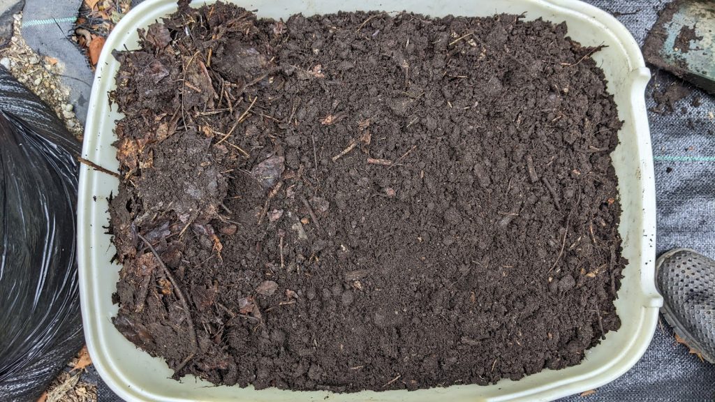 左側に寄せてあるのは、底に敷いておいた落ち葉です。落ち葉の分解は時間がかかります。