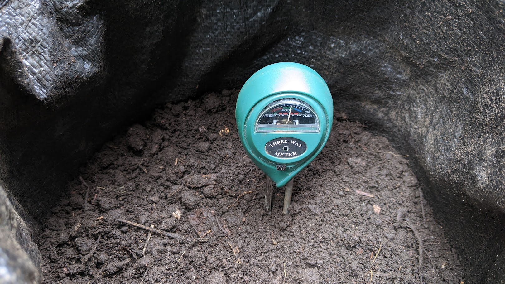 湿度を測ってみました。ちょうどいい感じの湿り具合なので、このまま水やりしないで、養生します。