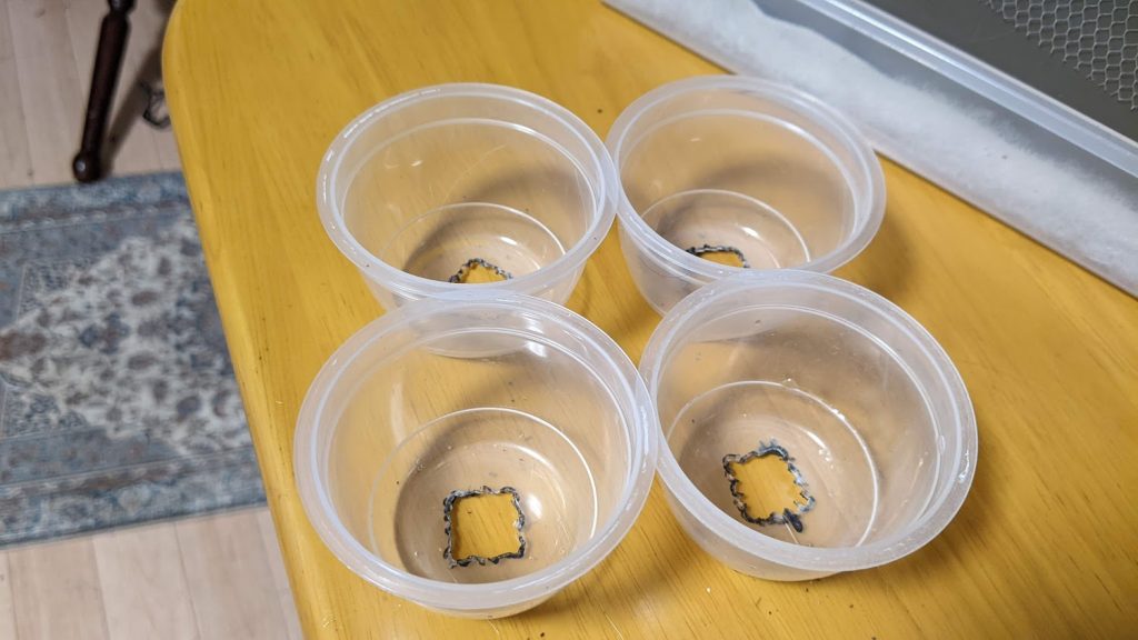 カップの底の穴に合わせて切ったスポンジに、種を蒔きました。レタスがよかったのですが、種が春までの期限でした。心配なので、アブラナ科のベビーリーフも一緒に種まきをしました。