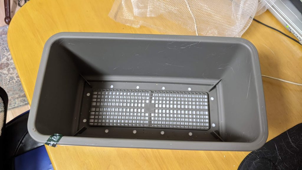 狭い室内で栽培するので、小さめのプランターを探しました。底が網目になっているので、それも気に入って買いました。100均商品です。
