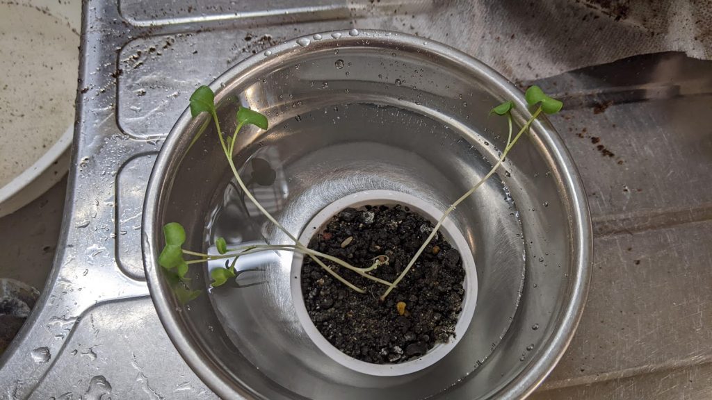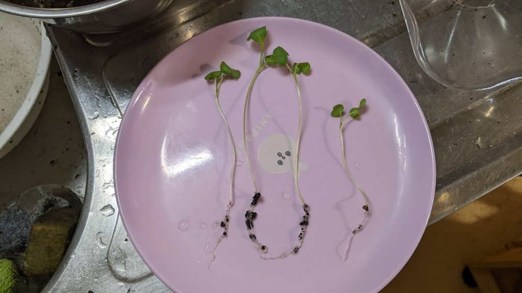 砂に植えて養液栽培をしていました。室内で、LEDライトを当てていましたが、徒長しています。