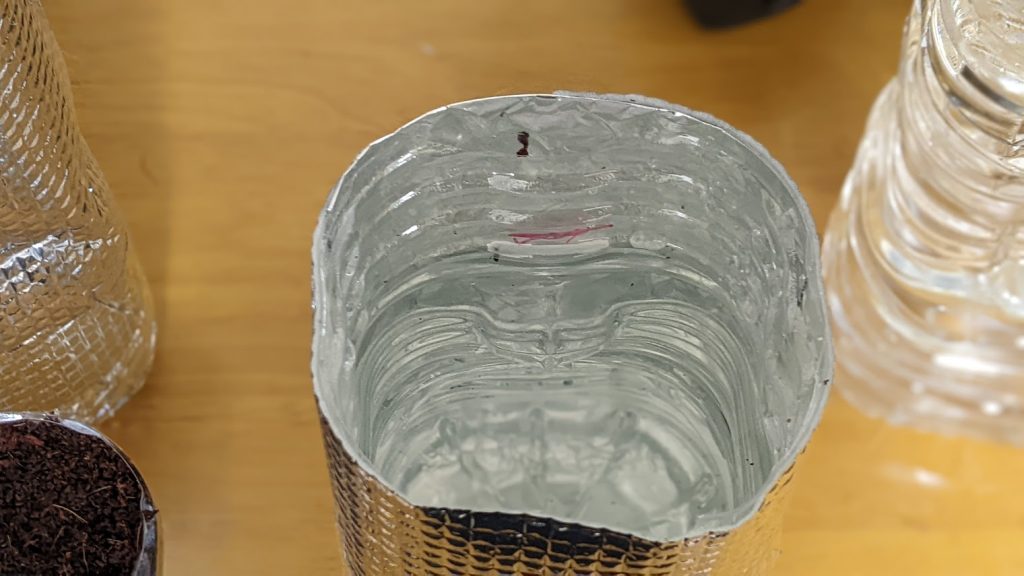 昨日作ったペットボトルの栽培槽です。これにセットします。
