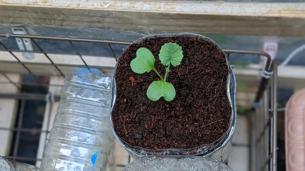 一枚目は8月21日に植えた写真です。二枚目が8月26日撮影しました。順調に育っています。