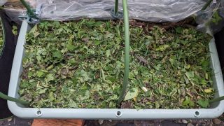 生ごみと草で培養土を仕込みました。すぐには使えません。菌が生ごみや草を分解してくれるのを待ってから使います。仕込んで約三週間経ちました。かなり熟成が進みました。